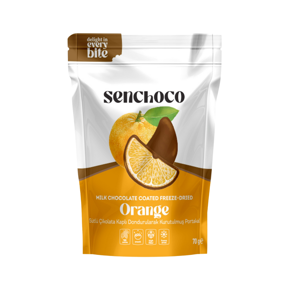 Taze portakal dilimleri freeze dry yöntemiyle kurutularak meyvenin ferahlığı ve aroması korunur. Sütlü çikolata ile kaplanan bu özel atıştırmalık, tatlı ile narenciye arasındaki ince dengeyi yakalayan keyifli bir lezzet sunar. Katkı ve koruyucu içermez. 70 gramlık pratik paketi sayesinde ofiste, yolda ya da gün ortası enerjisi olarak her zaman yanınızda.